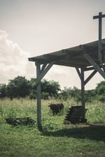 Cette image, "Bèf an savann", capture la quiétude d'une scène rurale typique de l'île.